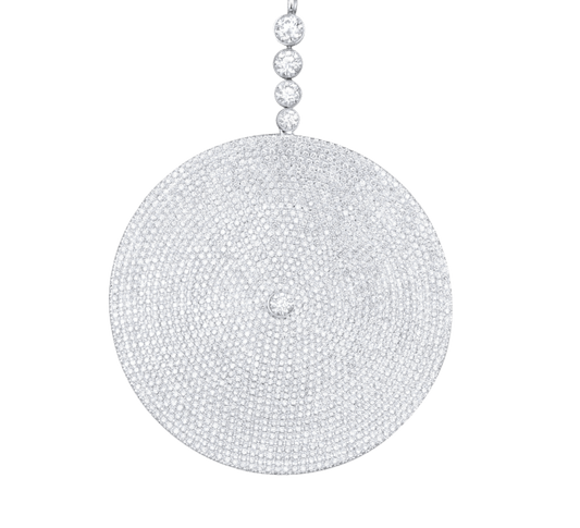 Large circular disc pave diamond pendant on diamond chain