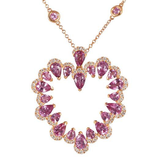 Heart shape pink Sapphire and diamond rose gold pendant chain