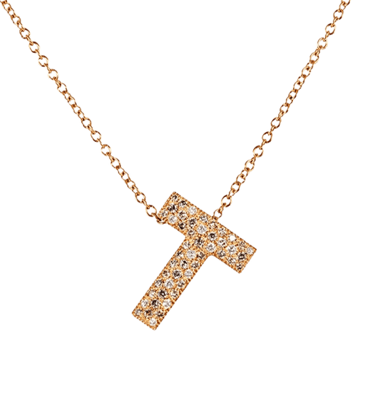 Initial name pendant chain in Rose gold, champagne and white diamonds (small)