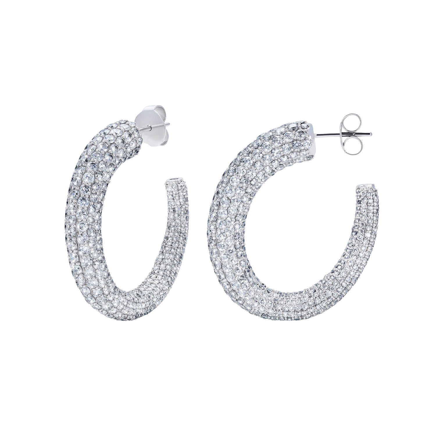 A dramatic and luxurious look, our large pave set diamond hoop earrings are impressive and enchanting take on the classic hoops. The diamond encrusted pair of earrings in the hoop design add sparkles and energy to the wearer. A jewellery piece that is classic yet modern.