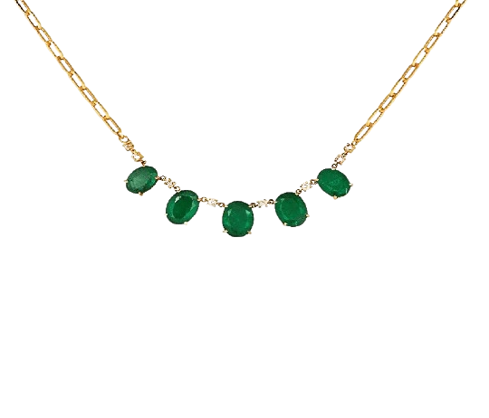 Oval emeralds and diamonds link chain necklace