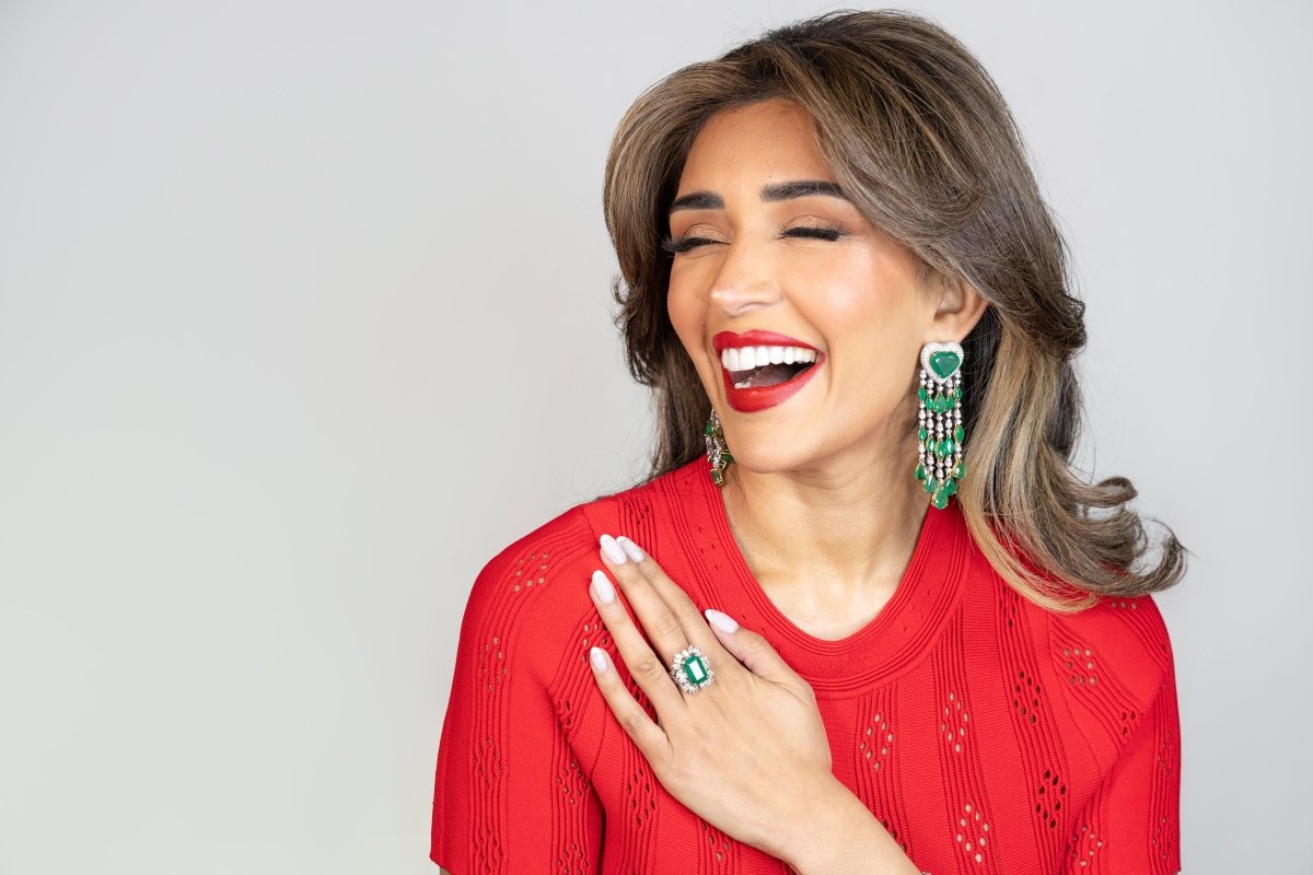 This exquisite ring features a breathtaking centre stone, a rectangular cut emerald of the most deep green colour surrounding this magnificent centre piece is meticulously arranged marquise diamond each one carefully selected for its exceptionaly clarity and brilliance. These diamonds serves as a radiant contrast to the emerald enhancing the rings overall allure. This ring is a testament to a timeless elegance and sophistication.