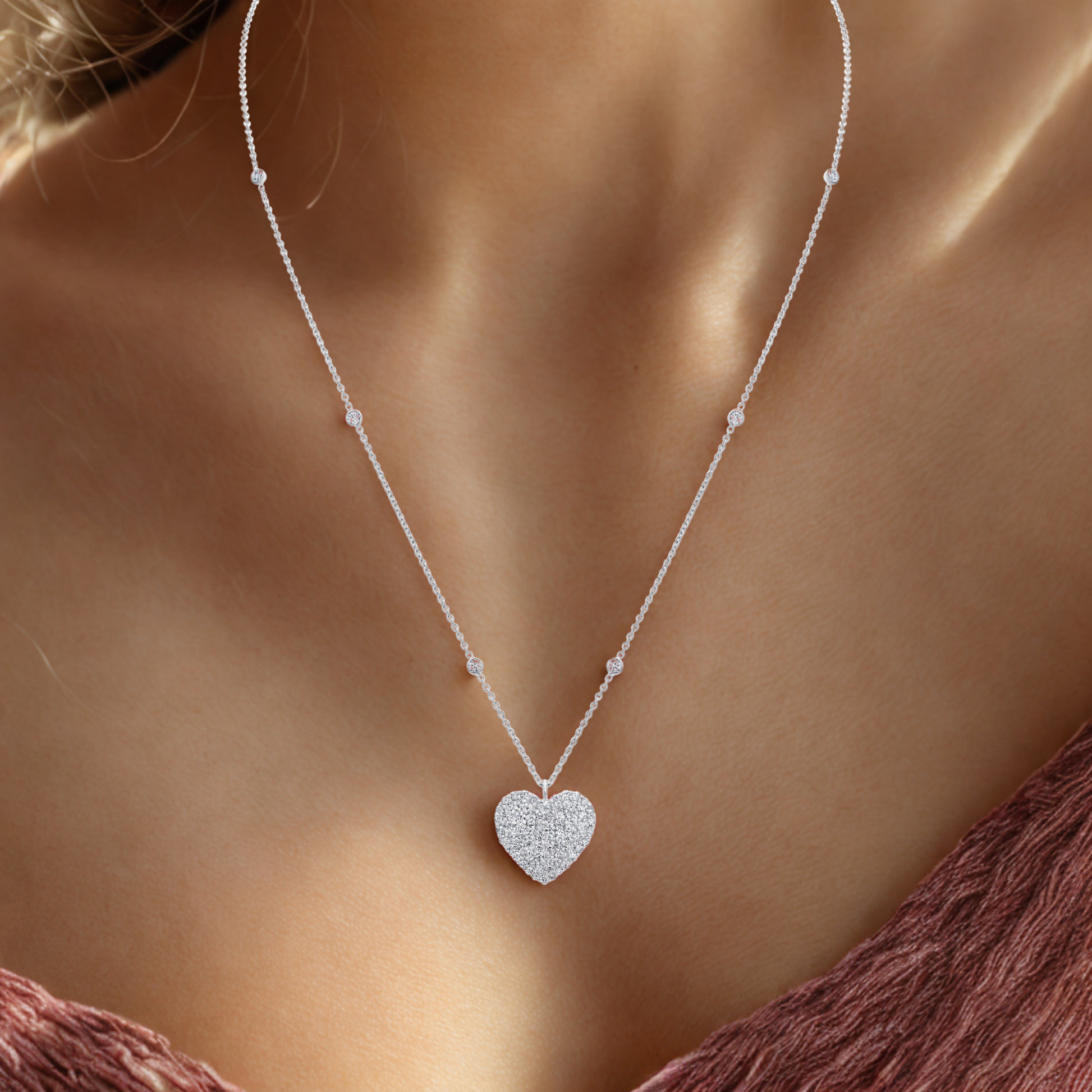 Stunning! Pave diamond heart shaped pendant worn closed to the neck attracts love and radiates energy. Layered with your other favourite chains and necklaces.A bedazzling piece of jewellery!