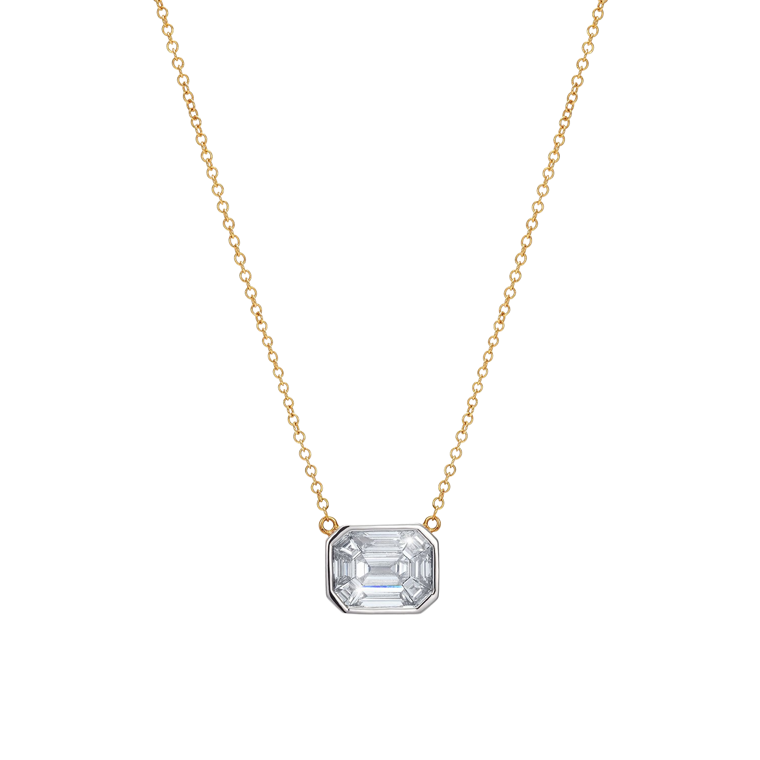 Stunning! Just one word to describe this stand alone, eye-catching illusion diamond pendant hung from a delicate gold chain. A great way to bring a subtle glow of happiness and light to your life.
