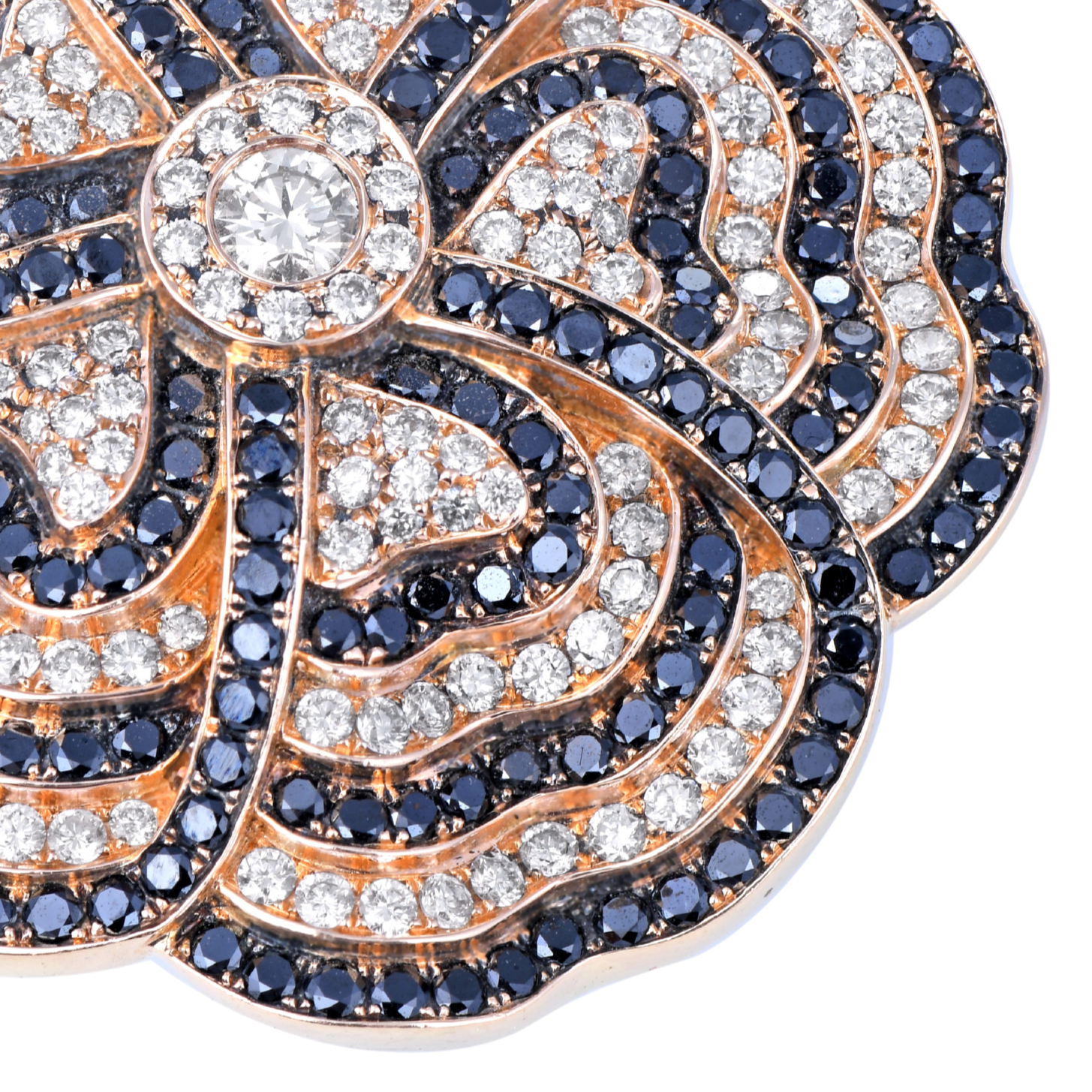 Inspired by nature, this three toned Flower Ring combines Rose Gold with White Sparkling Diamonds and Black Diamonds to give it a unique finish. The interplay of these three colours brings to life a jewel that stands out and adorns the finger. This piece of jewellery can only be made by the best craftsman using their years of experience making jewels to last a lifetime.