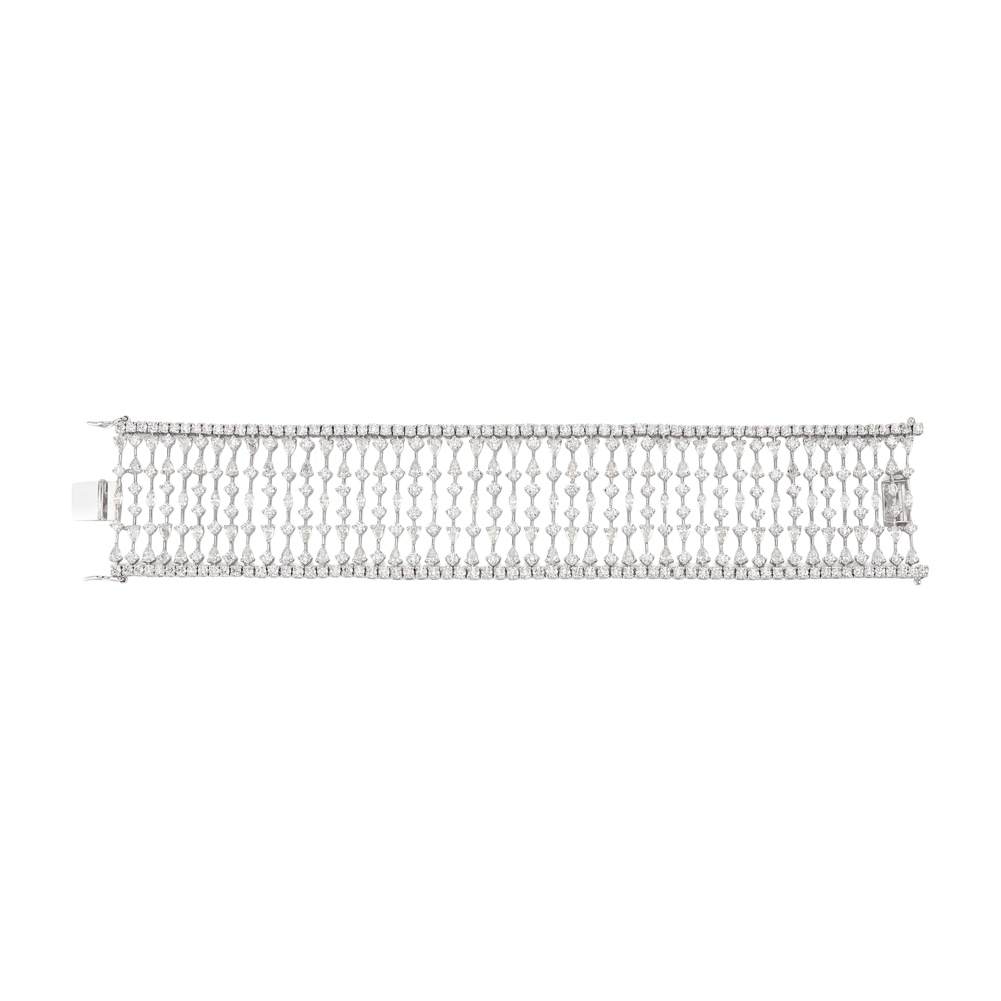 A magnificent diamond bracelet. A part of our Important jewellery collection. Round, pear shape and marquise diamonds woven in a beautiful web lie design covering the entire wrist. The gross wt is 78.4 gms. Net wt is 74.87 gms. Total diamond wt is 17.65 cts. Colour I.